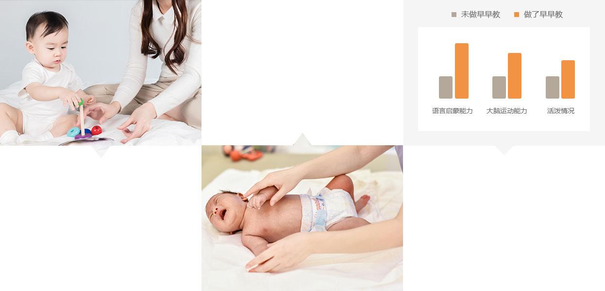 各项早期智力开发训练指导,包括做婴儿被动操,音乐熏陶,视力跟踪训练等
