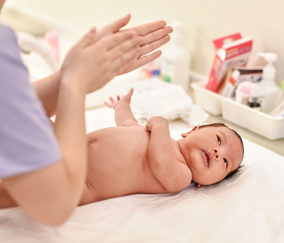 3.密切观察新生儿生命体征变化,为宝宝提供24小时专业护理,如更换尿片、脐部消毒、臀部护理等